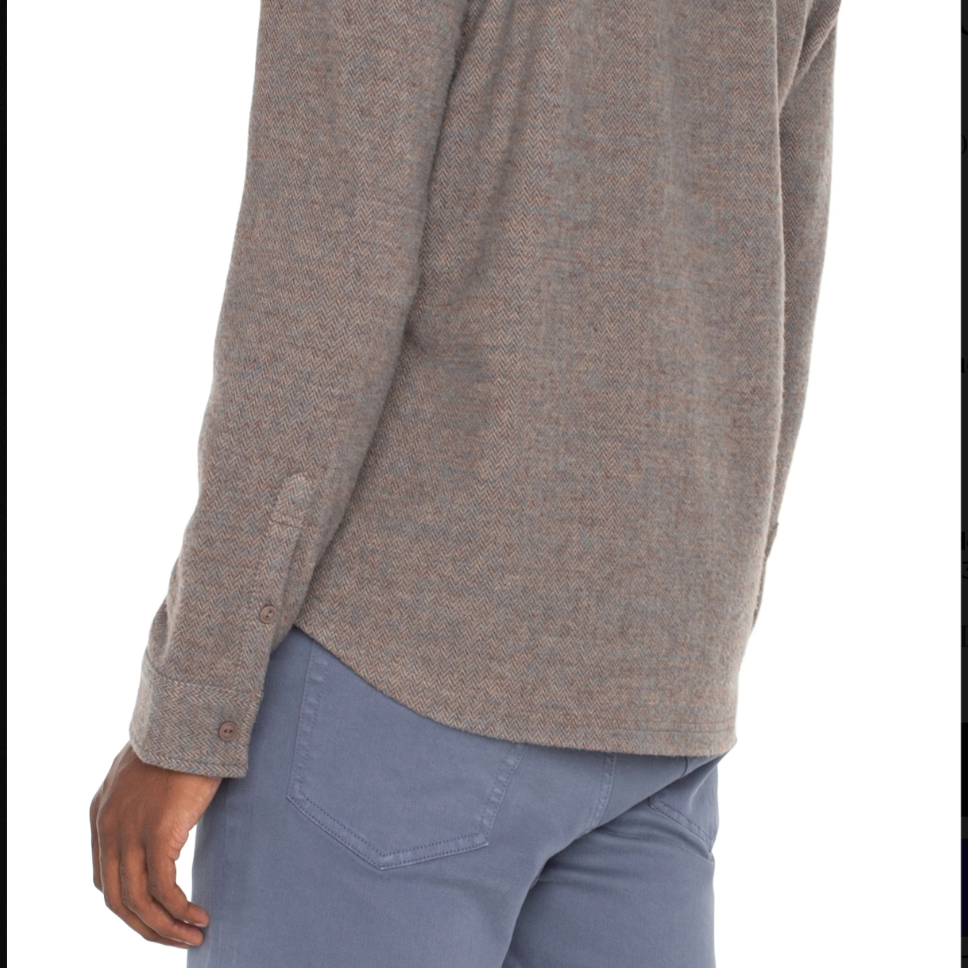 Introducing a classic long-sleeved shirt that is perfect for both casual and formal outings. Made with high-quality fabric and attention to detail, this shirt will add a modern touch to your wardrobe. Shown in taupe multi with touches of blue in the mix.