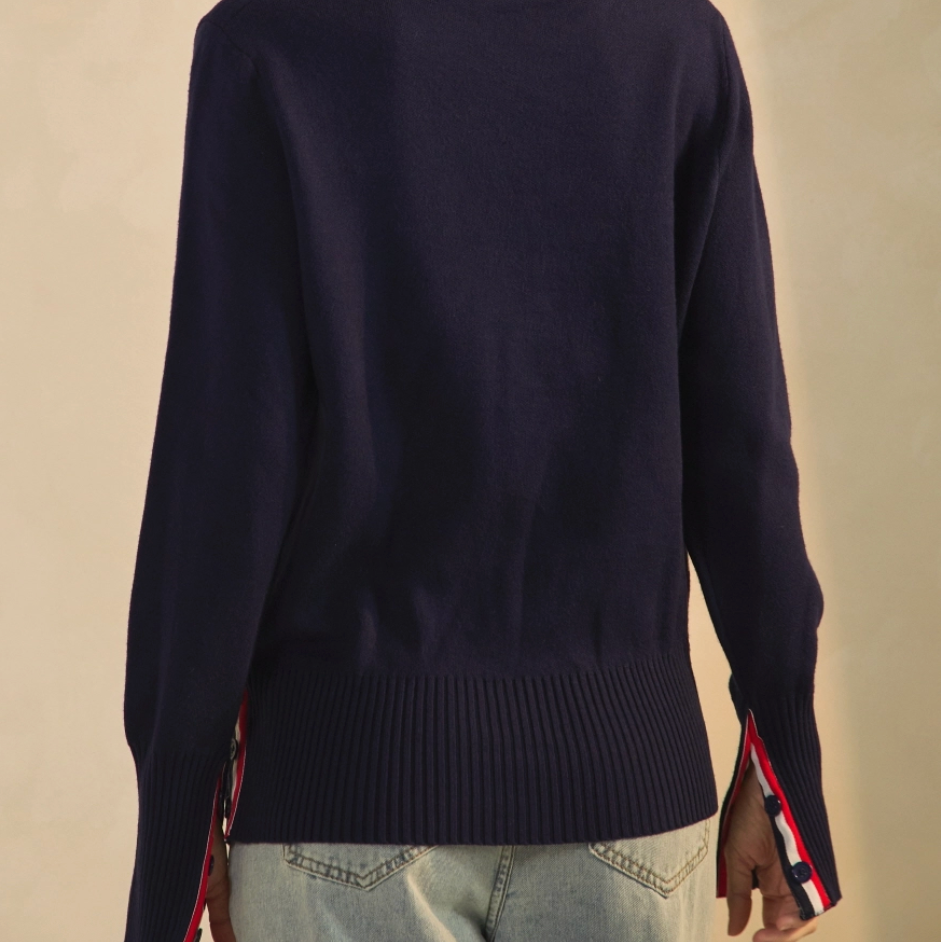 Stripes never go out of style—and this cozy pullover proves it! Slip into effortless comfort with a classic crew neckline, buttoned cuffs for an adjustable fit, and a contrast striped ribbed hem that adds just the right amount of visual interest. Perfect for layering or wearing solo, this versatile sweater works with everything in your closet. Available in plus sizes too, so everyone can enjoy the timeless appeal of this wardrobe essential.