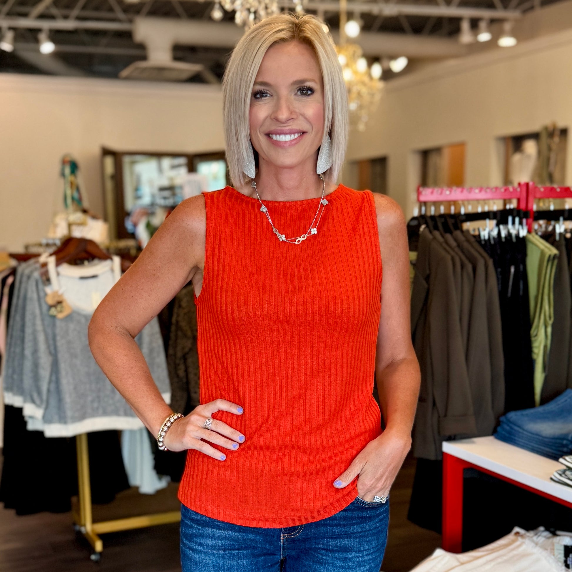 A polished staple designed for endless versatility. This sleeveless rib knit features a flattering boat neckline and soft, stretch-infused fabric for a smooth, body-skimming fit. Wear it solo for a clean, effortless look or layer it under jackets and cardigans. Available in multiple colors to suit every style and season.